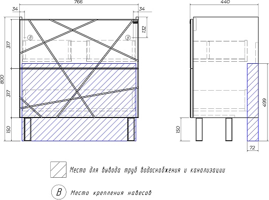 Тумба под раковину Vigo Geometry 800-0-2 Como - арт. 025 бетон.