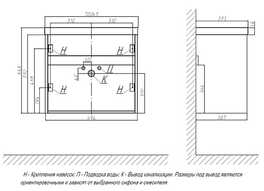 Velvex Тумба под раковину Gesso 70 дуб сонома/белая