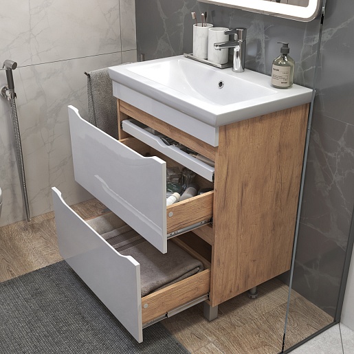 Vigo Тумба под раковину Grani 70 напольная белая/дуб золотой