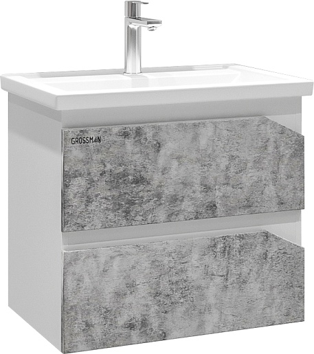 Grossman Тумба под раковину Инлайн 60 подвесная белая/бетон