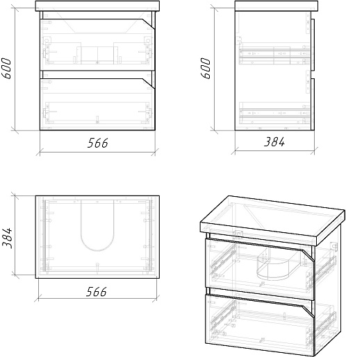 - 2 выдвижных ящика.