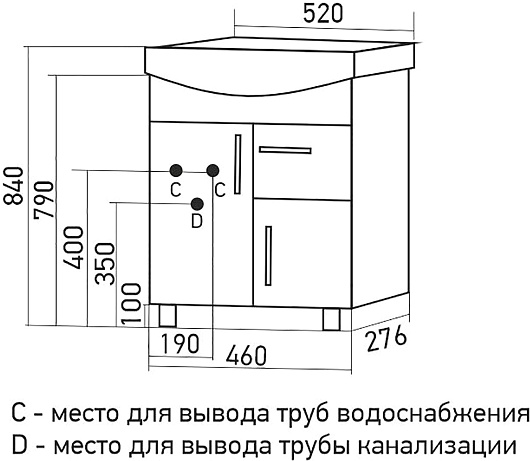 - 1 выдвижной ящик, 2 распашные дверцы.