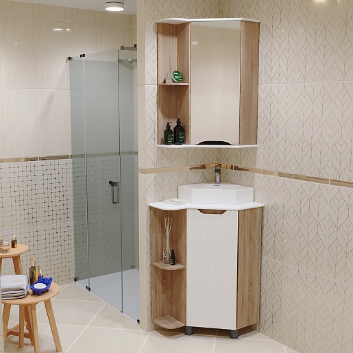 Mixline Тумба под раковину Корнер 67.5 L угловая белая/дуб