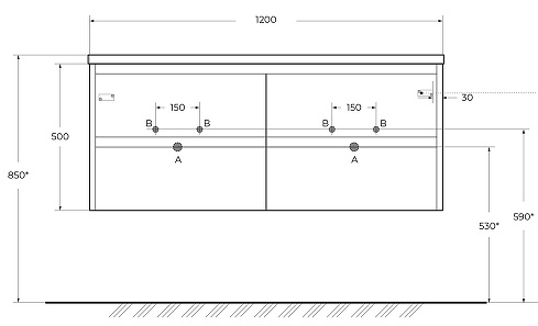 Габариты корпуса тумбы (ШхВхГ): 1200х500х460 мм.