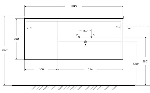 Габариты корпуса тумбы (ШхВхГ): 1200х500х460 мм.