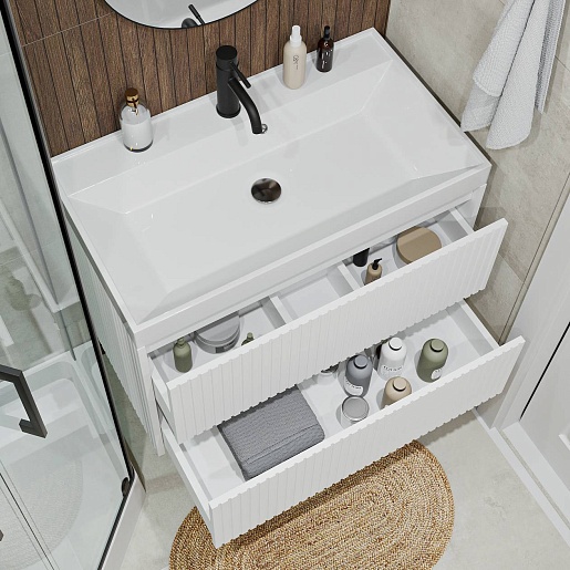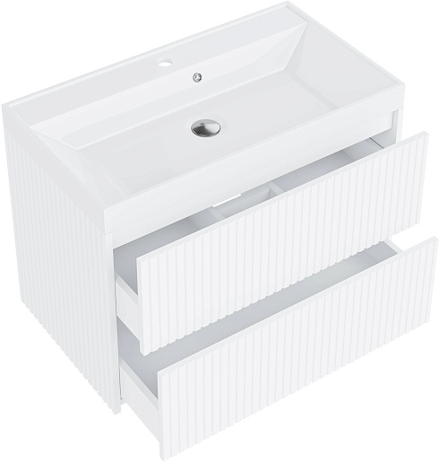 Подвесная тумба под раковину Vivon 80 белая матовая рифленая.