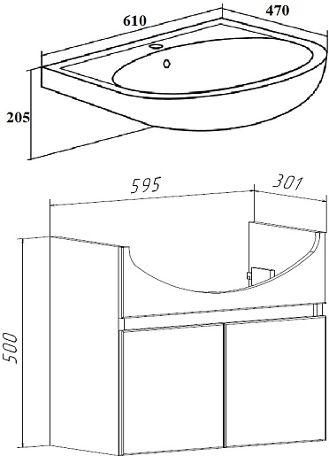 Подвесная тумба под раковину Runo Лада 60 - арт. 00-00001369 (4656760154987).
