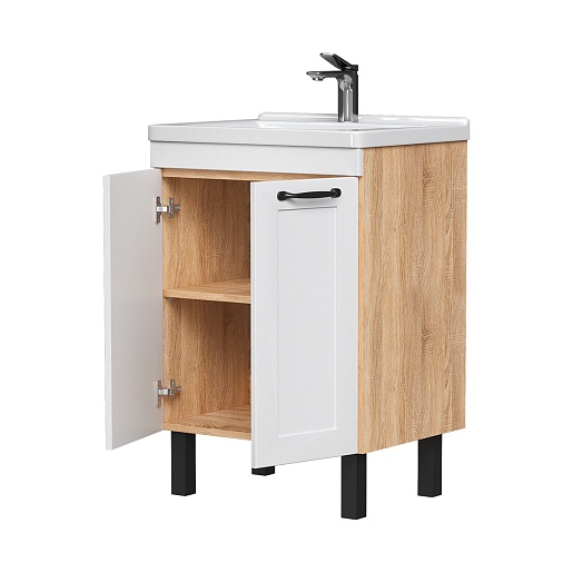 Equil Тумба под раковину Lago 60 2 ящика напольная белая/дерево