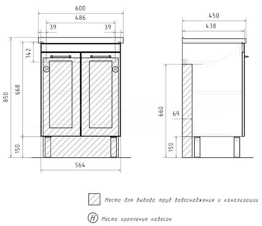 - Фасад тумбы изготовлен из МДФ и облицован матовой пленкой ПВХ с эффектом "Soft Touch".