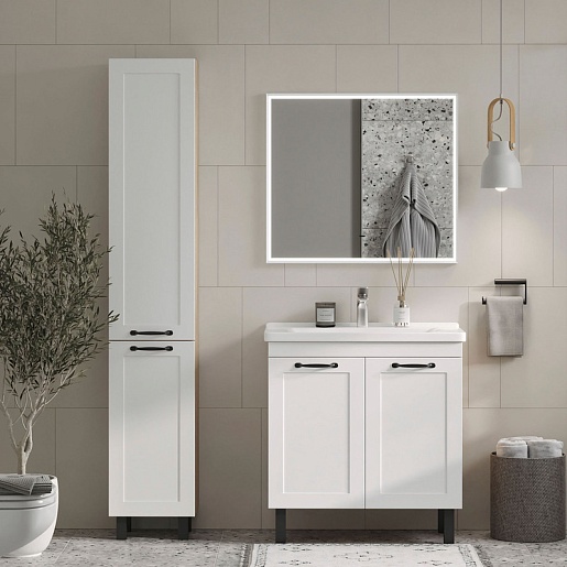 - Фасад тумбы изготовлен из МДФ и облицован матовой пленкой ПВХ с эффектом "Soft Touch".