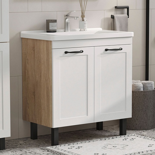 Equil Тумба под раковину Lago 80 2 ящика напольная белая/дерево