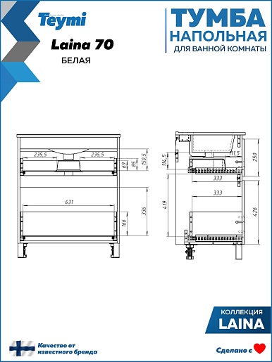 Напольная тумба под раковину Teymi Laina 70 белая - арт. T60818.