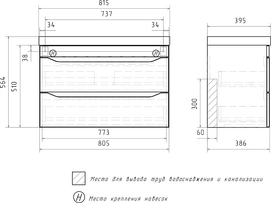 Подвесная тумба под раковину Volna Lake 80.2Y - арт. tpLAKE80.2Y-01.