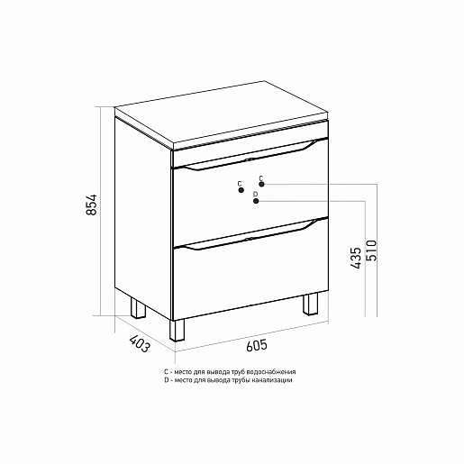 Mixline Тумба под раковину Лайн 60 2 ящика белая