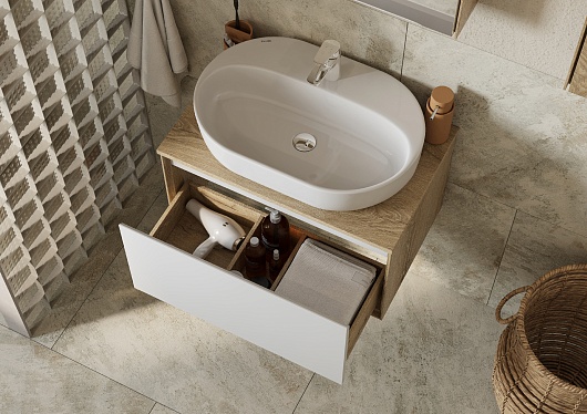 Акватон Тумба под раковину Либерти 70 белая/дуб эльвезия