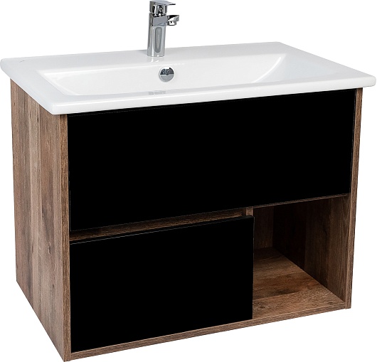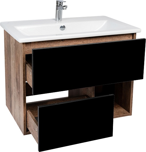 Viant Тумба под раковину Люксембург 75 подвесная черная матовая/дерево кейптаун
