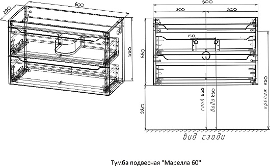 Подвесная тумба под раковину Style Line Марелла 60 Люкс Plus антискрейтч - арт. СС-00002405.