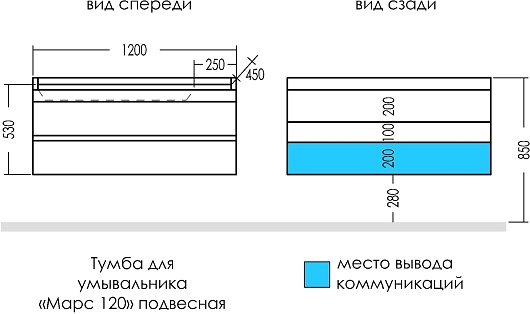 Подвесная тумба под раковину Санта Марс 120 - арт. 700424.