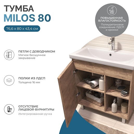 Напольная тумба под раковину Vigo Milos 800-1-0 - арт. 318 дуб золотой.