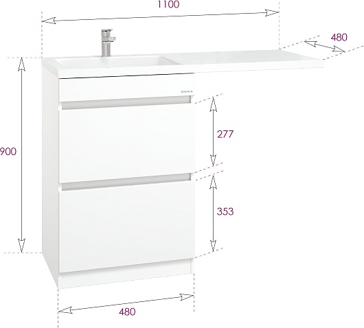 Onika Тумба с раковиной Милтон 110 R под стиральную машину белая