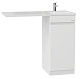 - Тумба имеет белый глянцевый фасад, строгие формы без декора, удобные интегрированные ручки и дверцу (петли справа), за которой скрывается пространство для хранения, разделенное полочкой.