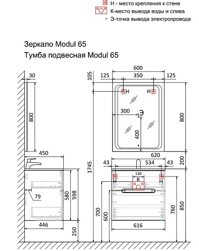 Jorno Тумба под раковину Modul 65 подвесная белая Mоl.01.62/P/W