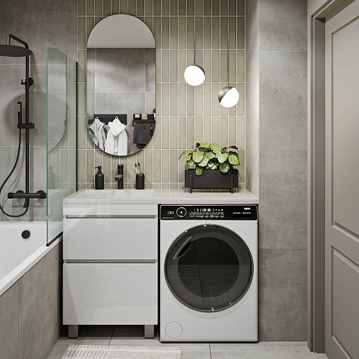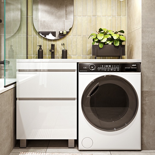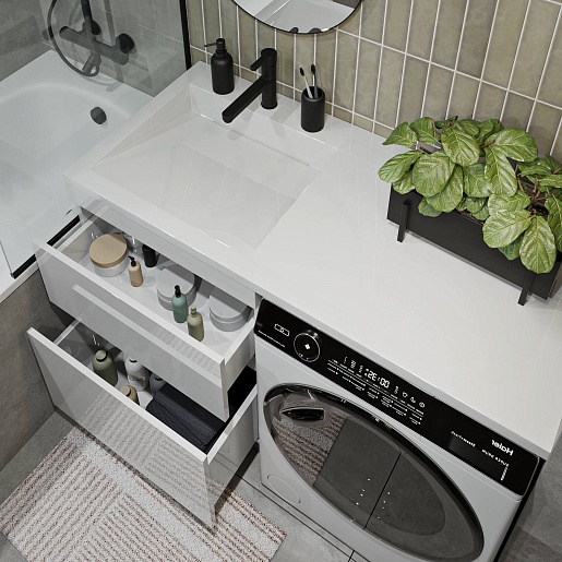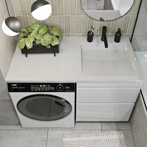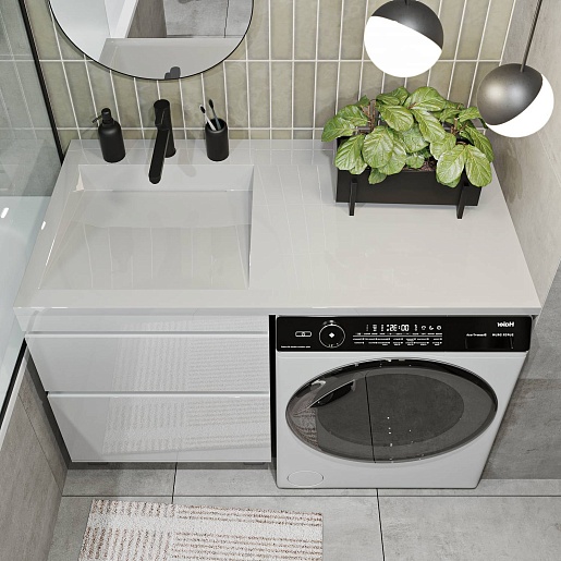 Тумба под раковину под стиральную машину Vivon Harper 120 напольная белый глянец.