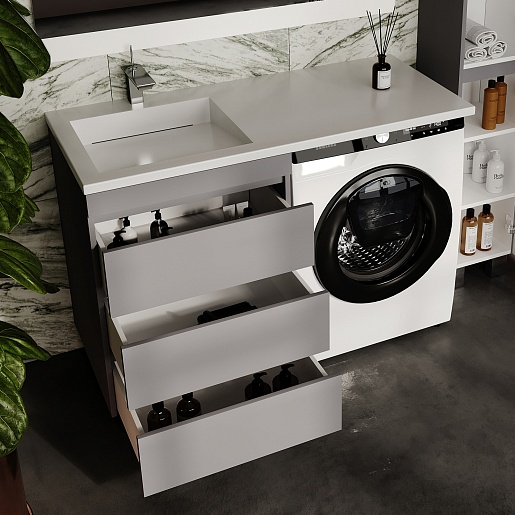 Style Line Тумба под раковину над стиральной машиной Леон 120 3 ящика Люкс Plus серая матовая