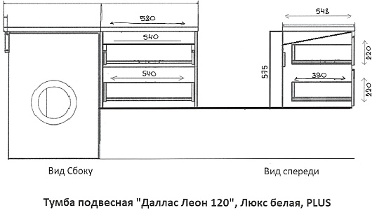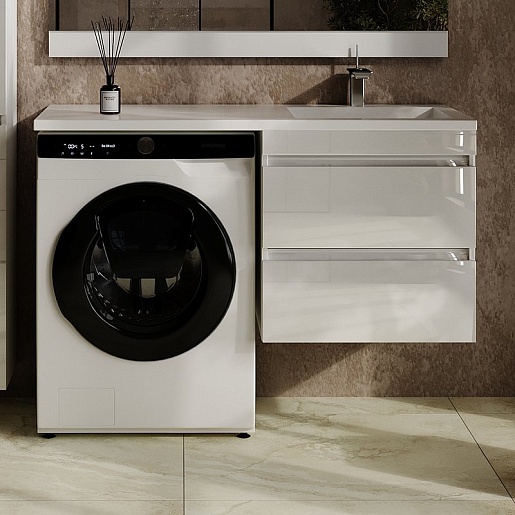 Style Line Тумба под раковину над стиральной машиной Леон 120 подвесная Люкс Plus белая