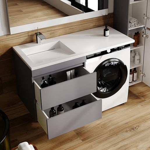 Style Line Тумба под раковину над стиральной машиной Леон 120 подвесная Люкс Plus серая матовая