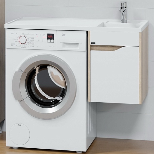 СанТа Тумба под раковину над стиральной машиной Сатурн 38 подвесная белая/дуб австрийский