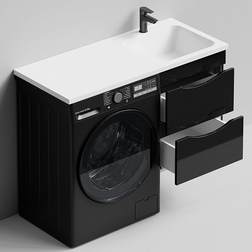 Водолей Тумба под раковину над стиральной машиной Смайл 48 R подвесная черная