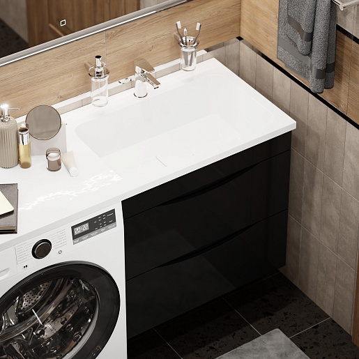 Водолей Тумба под раковину над стиральной машиной Смайл 68 R подвесная черная