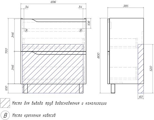 Тумба под раковину Vigo Neo 700-0-2 - арт. 328.