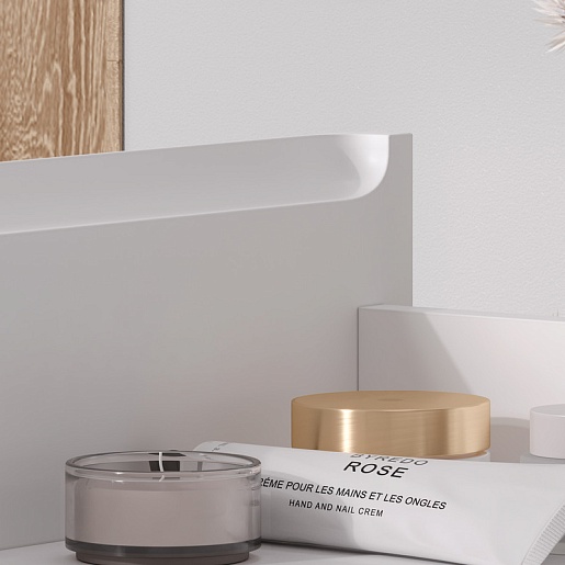 - Фасад тумбы изготовлен из МДФ и покрыт матовой эмалью. Корпус изготовлен из влагостойкого ЛДСП.
