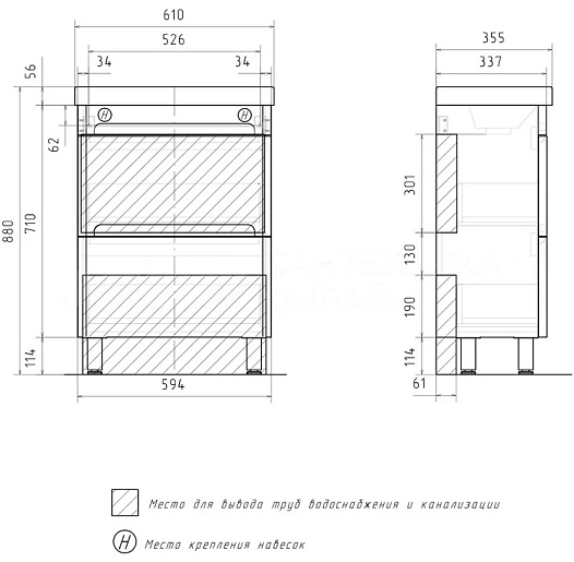 - Тумба устанавливается на 4 ножки и фиксируется к стене при помощи креплений.