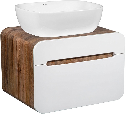 Runo Тумба под раковину Ницца 60 подвесная белая/темное дерево