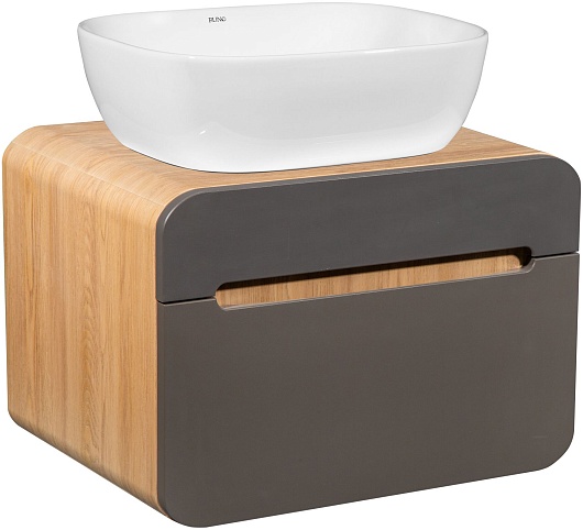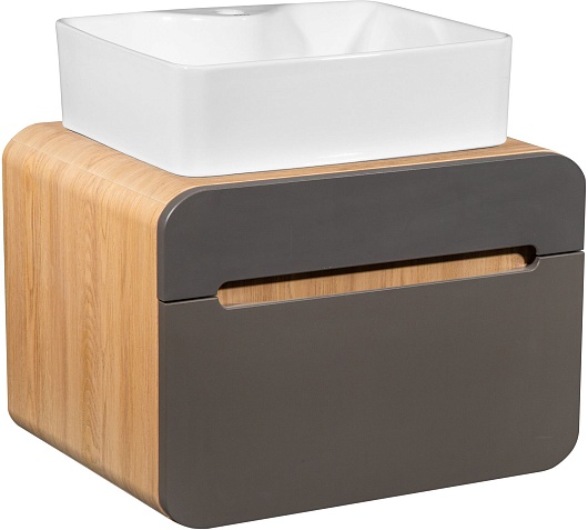Runo Тумба под раковину Ницца 60 подвесная графит/дуб натуральный