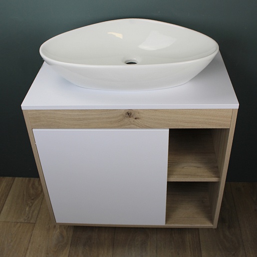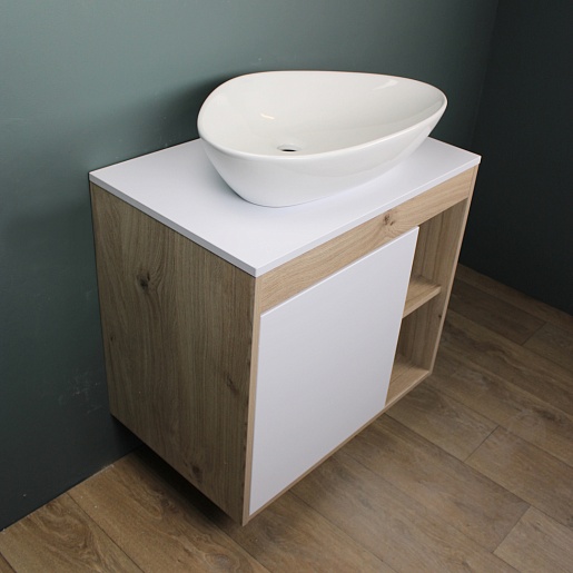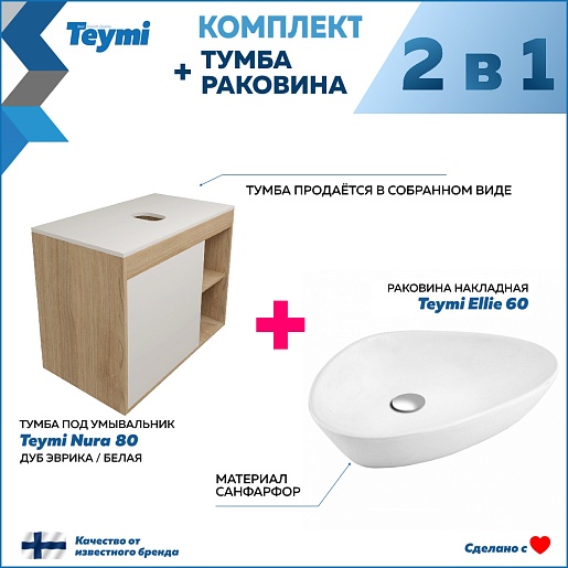 Подвесная тумба с накладной раковиной Teymi Nura 80 Ellie 60 дуб/белый - арт. T60533 / T50802.