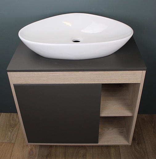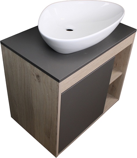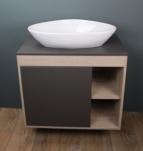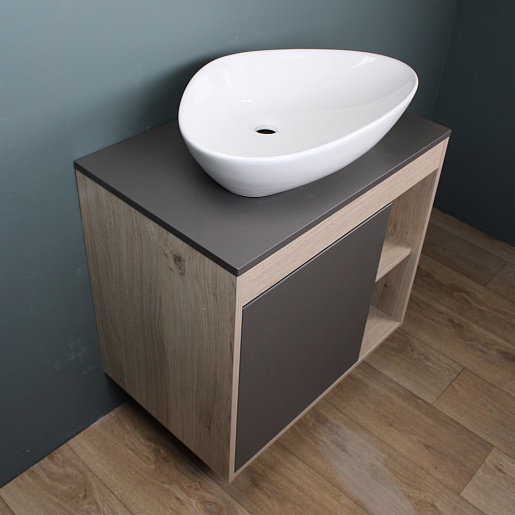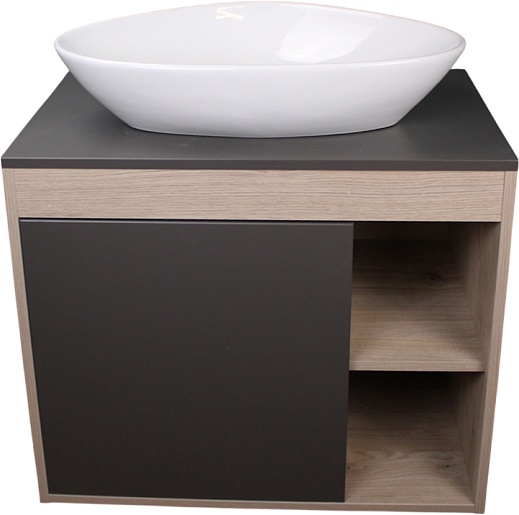 Подвесная тумба с накладной раковиной Teymi Nura 80 Ellie 60 дуб/графит - арт. T60534 / T50802.