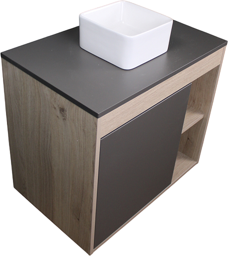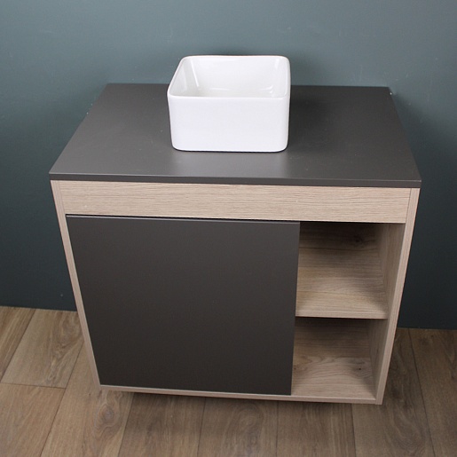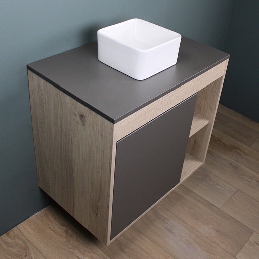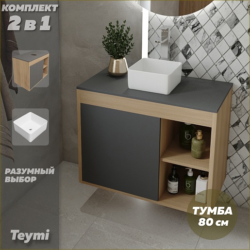 Подвесная тумба с накладной раковиной Teymi Nura 80 Helmi Mini 24 дуб/графит - арт. T60534 / T50802.