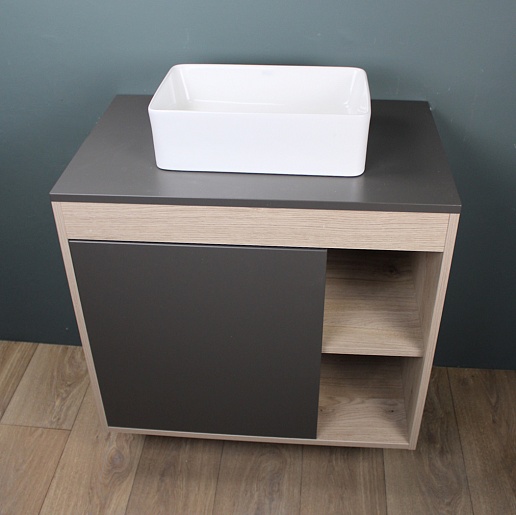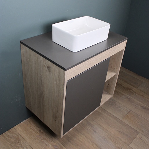 Подвесная тумба с накладной раковиной Teymi Nura 80 Helmi Mini 38 дуб/графит - арт. T60534 / T50304.