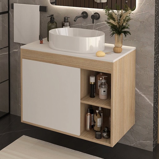 Подвесная тумба под накладную раковину Teymi Nura 80 дуб/белый - арт. T60533.