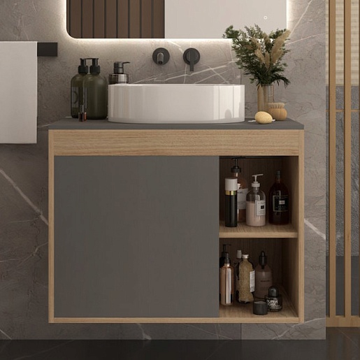 Подвесная тумба под накладную раковину Teymi Nura 80 дуб/графит - арт. T60534.