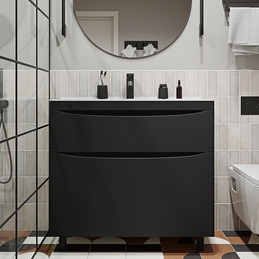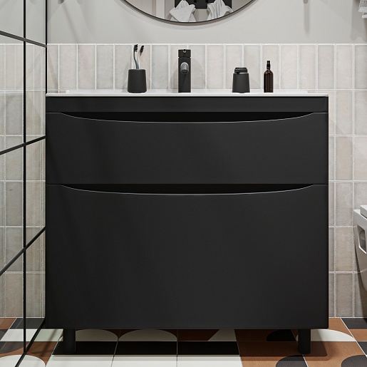 Тумба под раковину Vivon Ostin 90 напольная черная матовая - арт. Ostin-noz-90-BL.