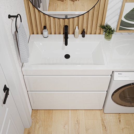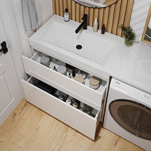 - Для размещения ванных принадлежностей предусмотрено два вместительных ящика, оснащенных направляющими с механизмом плавного закрытия - доводчиками.