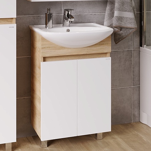 Grossman Тумба под раковину Поло 55 дуб сонома светлый/белая