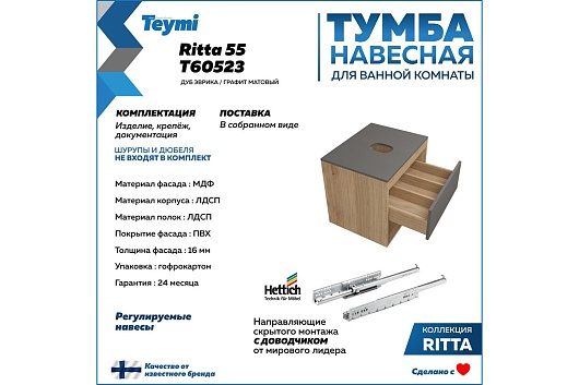 Teymi Тумба под раковину Ritta 55 дуб эврика/графит матовый подвесная T60523