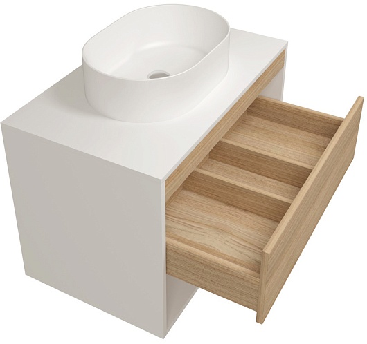 Подвесная тумба под накладную раковину Teymi Ritta 75 белый/дуб - арт. T60539.