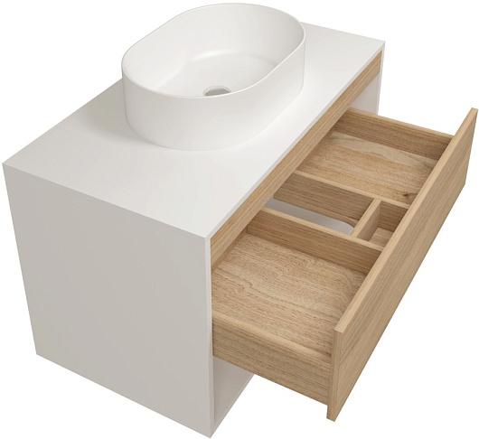 Подвесная тумба под накладную раковину Teymi Ritta 85 белый/дуб - арт. T60540.